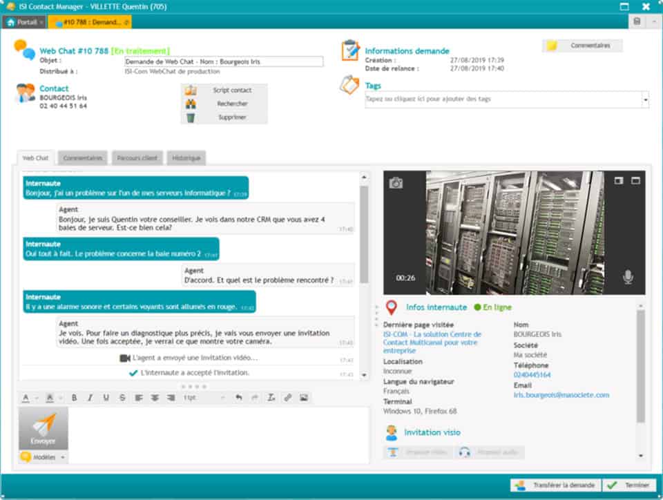 InterACT by ISI-COM is an omni-channel customer interaction management solution. The solution not only allows to catch, analyse, prioritise and dispatch telephone interactions, but also emails, web interactions (web forms, webchats, webcallbacks), video interactions, social networks or chatbots requests. This would be in compliance with the business management rules of the end customer.